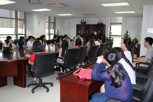 在逸夫外文楼B912会议室举办研究生就业经验交流会。2015届9位优秀毕业生与2014级研究生分享了自己的就业经历和感悟,会议由辅导员马薇老师主持。