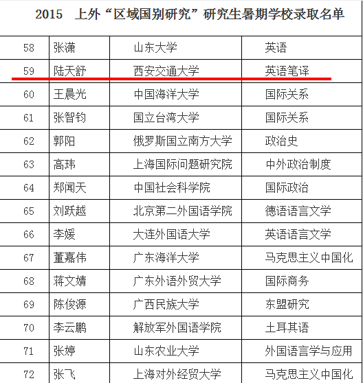 MTI2014级翻译硕士陆天舒,经过自主申请和学校推荐,成功获录2015年上海外国语大学暑期学校。他是本次该项目中污污漫