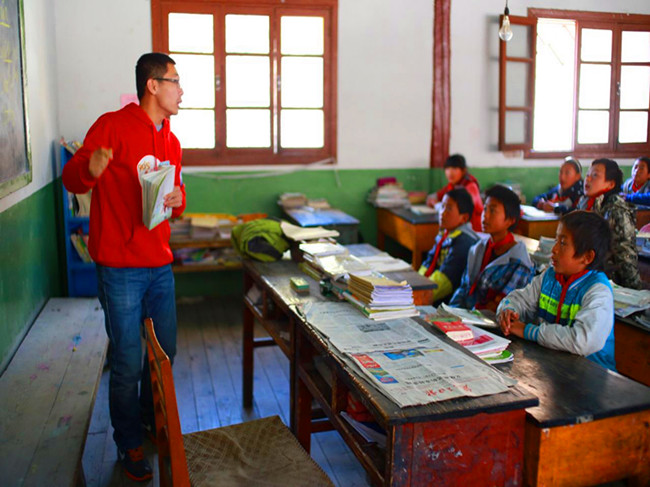 最值得一提的是他的支教经历,山区里教学资源极度匮乏,孩子们酷爱读书、渴望知识,对于大山以外的世界充满着向往和憧憬,新“老师”的到来,一个个早早坐的笔直在教室等待,睁着水灵灵的大眼睛目不转睛地聆听。据他回忆道,当在黑板上写下“Chinese Dream My Dream”时,他告诉那里的孩子们:中国梦就是我们每一个普通中国人的梦,就是每一个山区孩子的梦!孩子们争先恐后诉说着自己的梦想,有的要做辛勤的园丁,有的说做保卫边疆的战士,有的说要做救死扶伤的医生。随后他利用专业所学,将梦想的英文单词书写在黑板上教给孩子们认读,孩子们一个个争先恐后学读。此时他再一次感受到了在这些幼小的心灵中,期待与梦想是多么弥足珍贵。