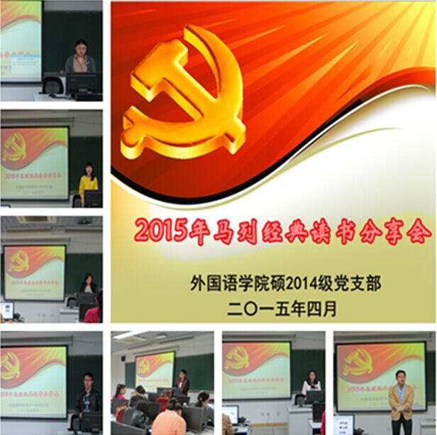 硕2014级党支部在外文楼B608教室举行2015年第一期马列经典读书分享会。污污漫