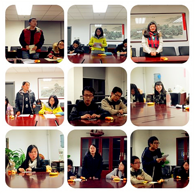 根据支部会前商定,确定中心议题“回顾2014的自我与支部”,马薇老师对民主生活会的召开背景及意义做了简要介绍。她说, 民主生活会是党组织和党员遵循实事求是原则开展批评和自我批评的有力武器,有助于充分发扬党内民主,增进交流,加强团结,互相监督,共同提高,并希望各位党员同学能在相互的总结与评点中共同成长。