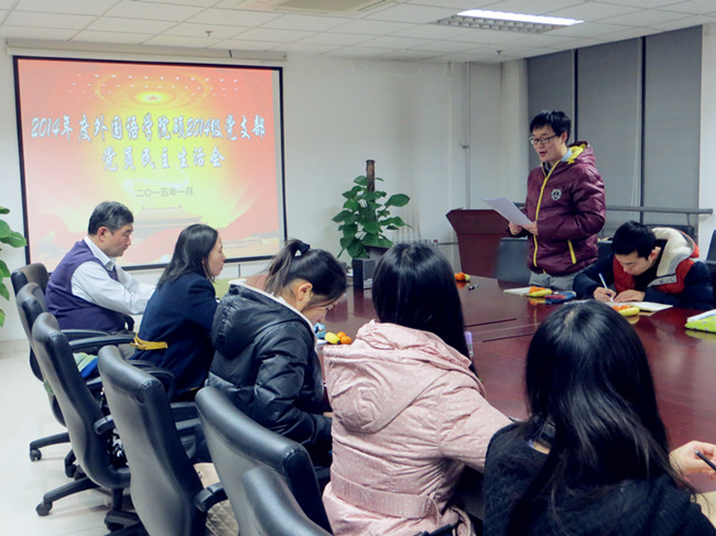 为扎实做好2014年度总结工作,开展好党员批评和自我批评,着力构建“幸福支部”,2015年1月16日晚7:30, 硕2014级党支部在外文楼B912会议室召开2014年度民主生活会。污污漫