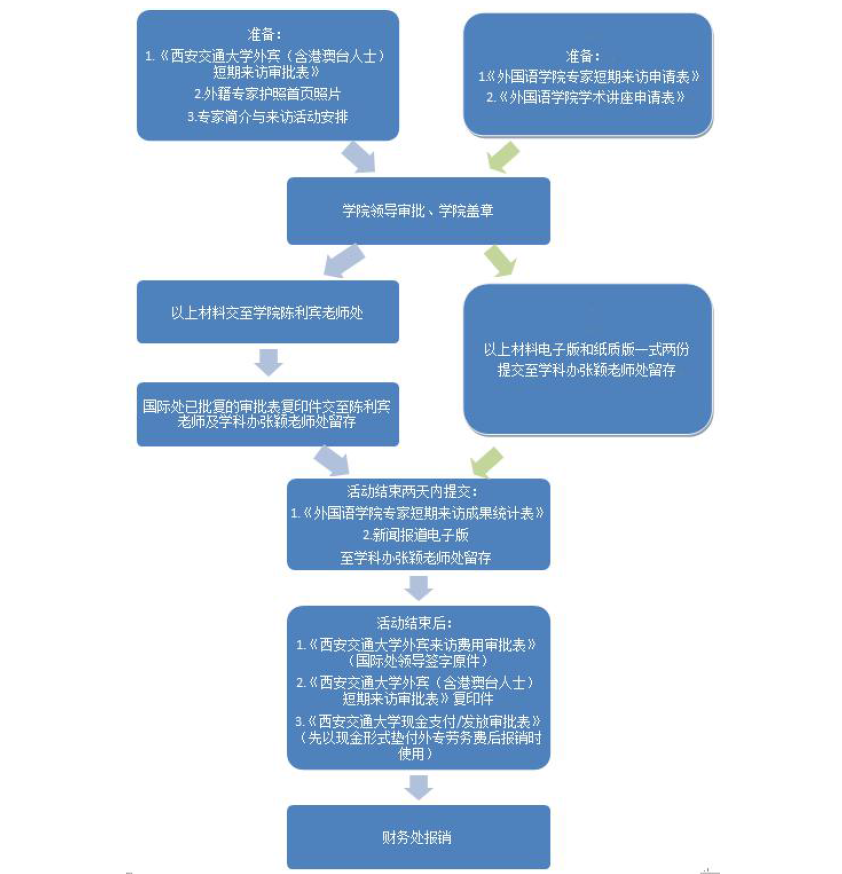 为规范学院对学术交流的管理,配合国际交流处外国专家来校管理制度的实施,规范污污漫 中外专家短期来访的申请审批流程和档案留存规定,方便事后经费报销,特将中外专家进校园短期工作的办理流程做出以下规定: