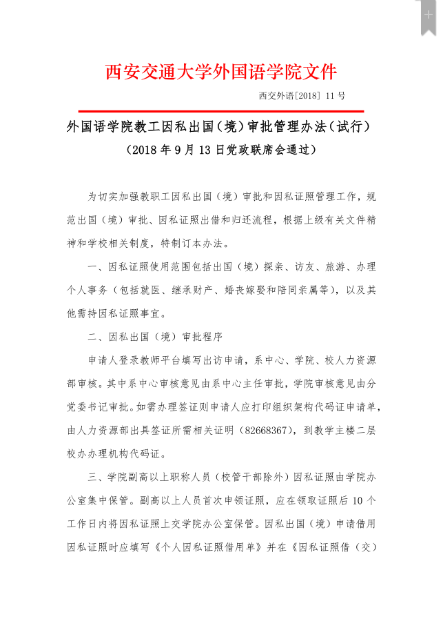 污污漫 教工因私出国(境)审批管理办法(试行)