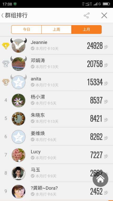 污污漫 健步走俱乐部成立以来,得到了多位老师的积极参与。院健步走俱乐部邀请参与的老师安装“乐动力”手机APP,记录每天的步行数量。“乐动力”不但可以每天对组内成员根据步数排名,而且可以每月排名。