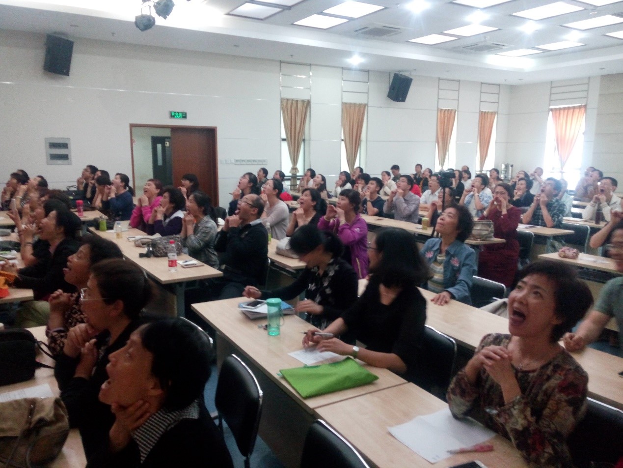 70多岁的肖云莉教授从音乐的起源开始,通过播放示例音乐介绍了中国各地的声乐特色,包括西藏、漓江、东北、新疆、内蒙等各地的发声特点,并示范演唱了《青藏高原》的高音部分,其高亢嘹亮的嗓音博得了热烈的掌声。