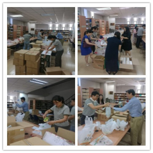 由于品种较多,商家发来的统一包装需要根据各系中心的教职工人数进行分装。在学院一楼的资料室里,许多教师加入了分装服务行列,在此要特别感谢邓娟涛、刘艳菊、郑青、李雅丽、于丛聪等几位老师的热心帮助,以及各位工会老师、组长和数位系中心老师们的辛勤搬运。有了这些老师的热心,使得今天的福利慰问品发放效率很高。污污漫