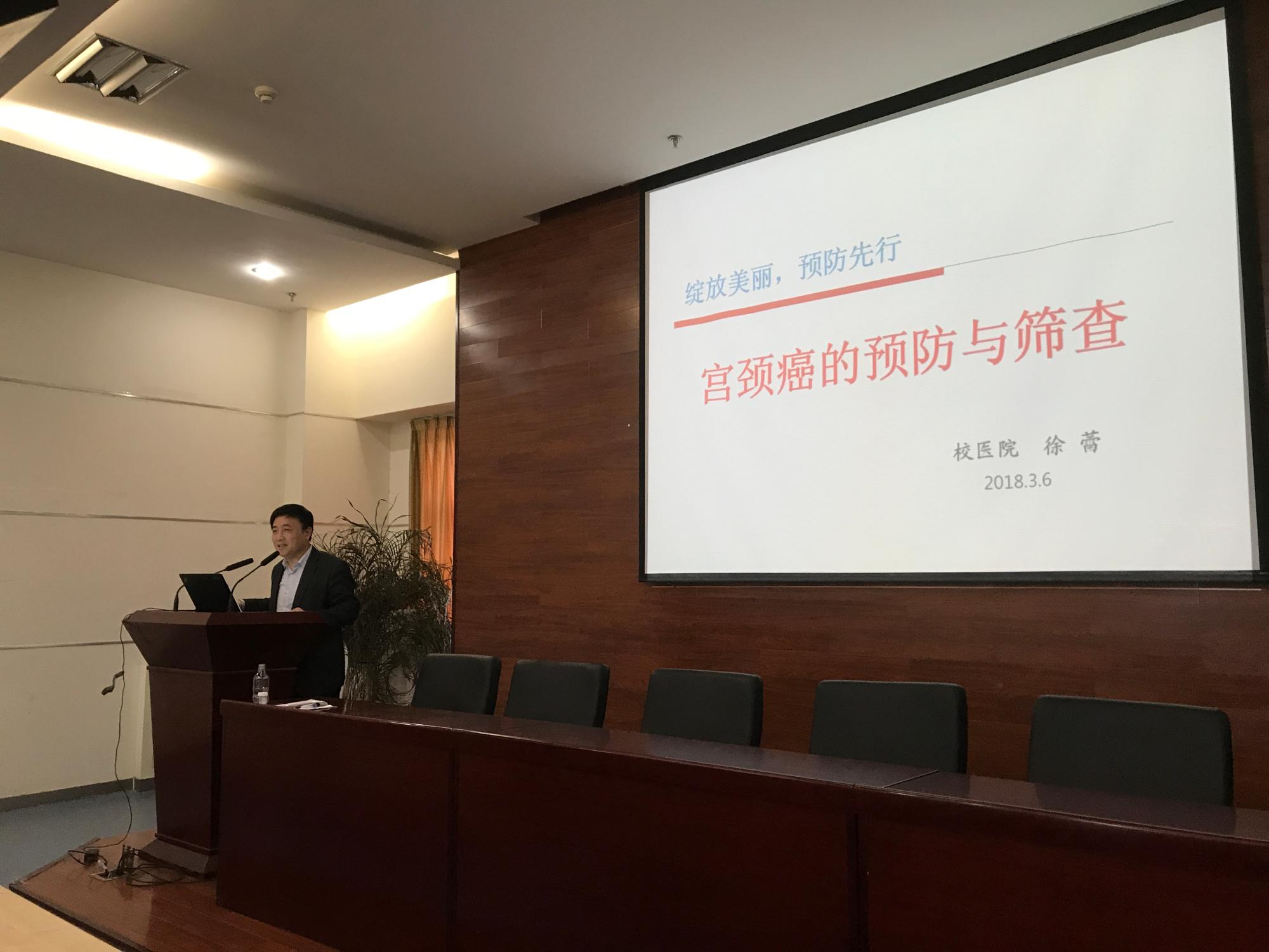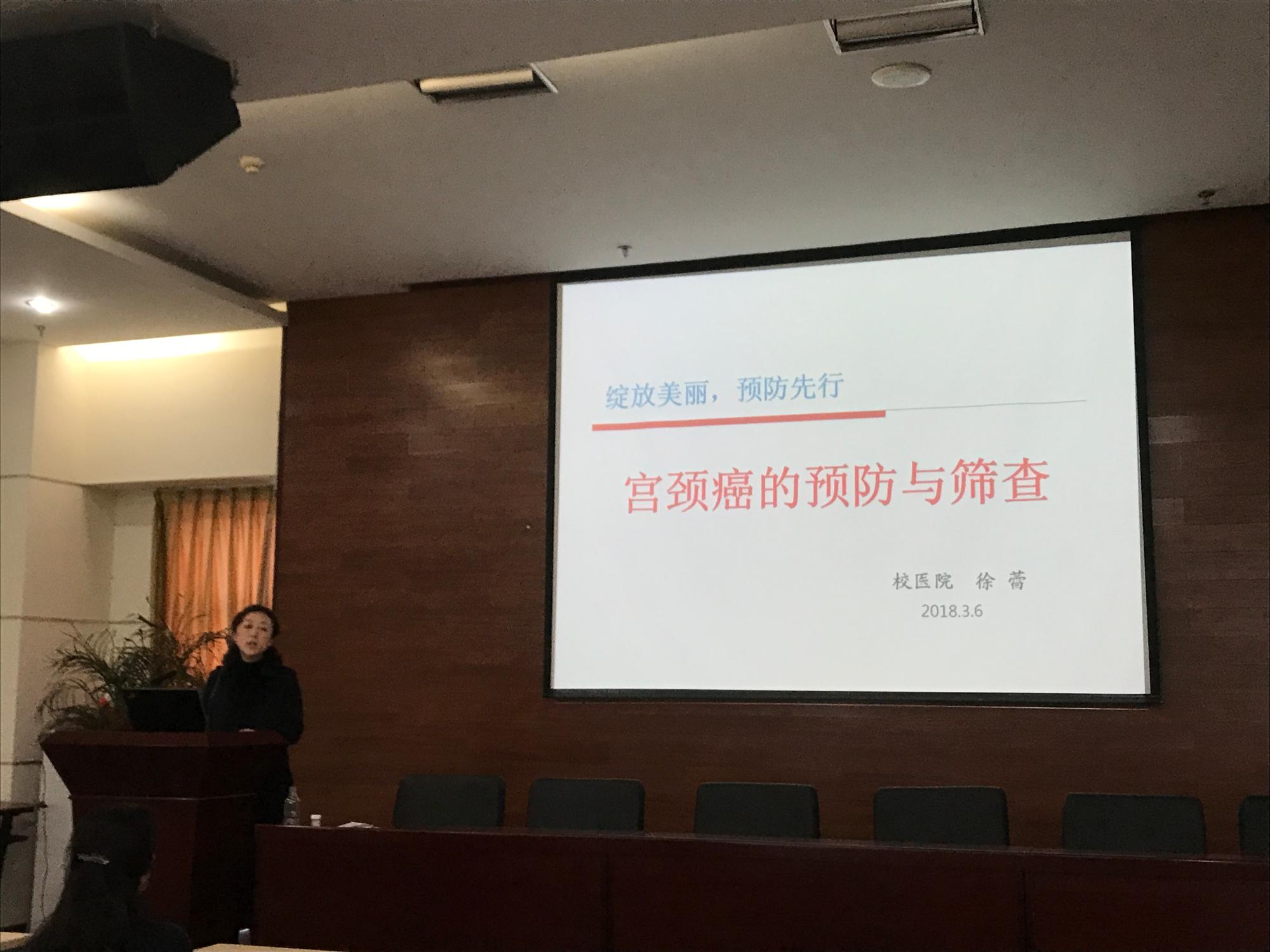 邀请校医院徐蕾副院长为教职工做题为“绽放美丽,预防先行——宫颈癌的预防与筛查”健康知识讲座。讲座由污污漫