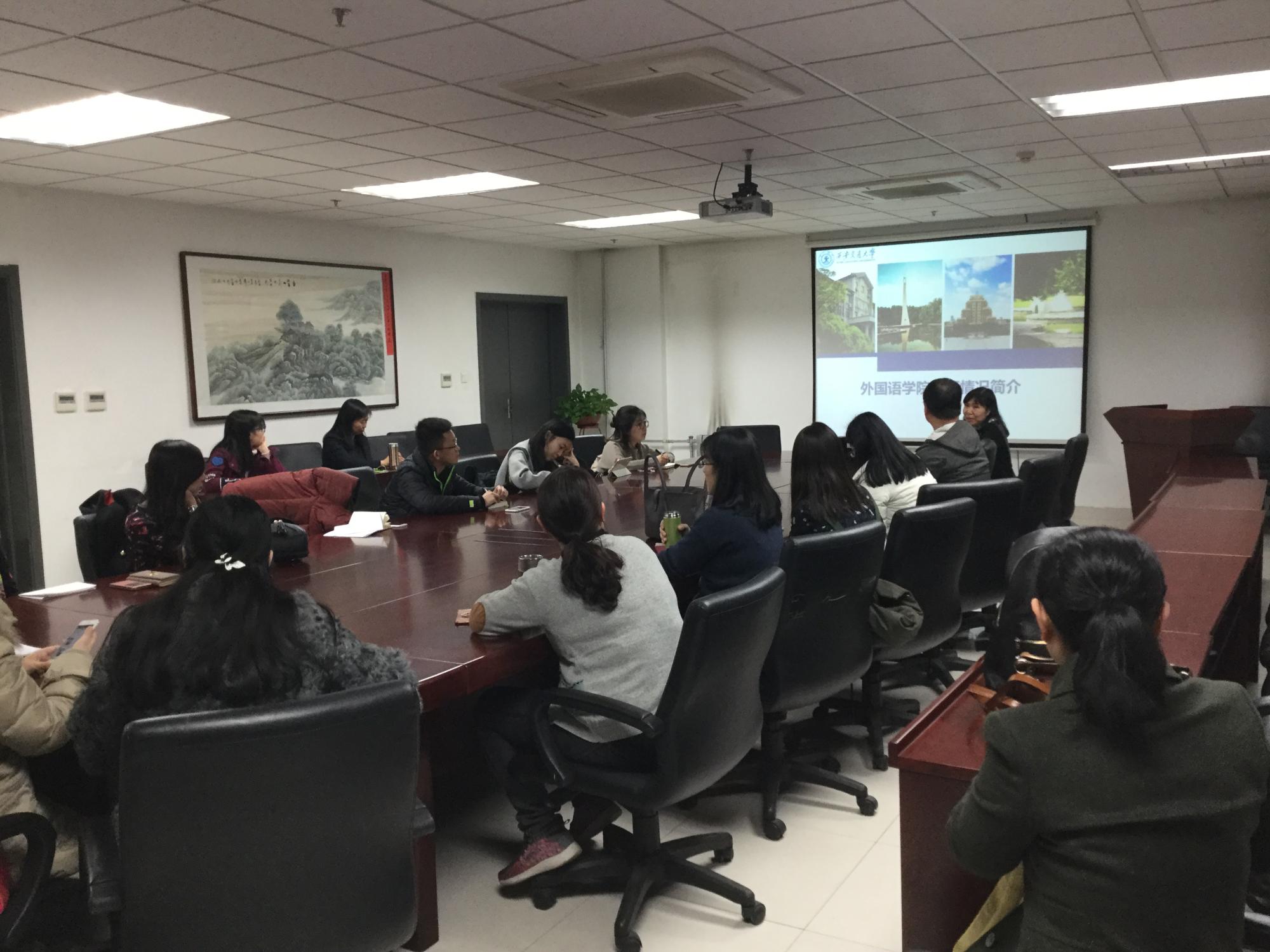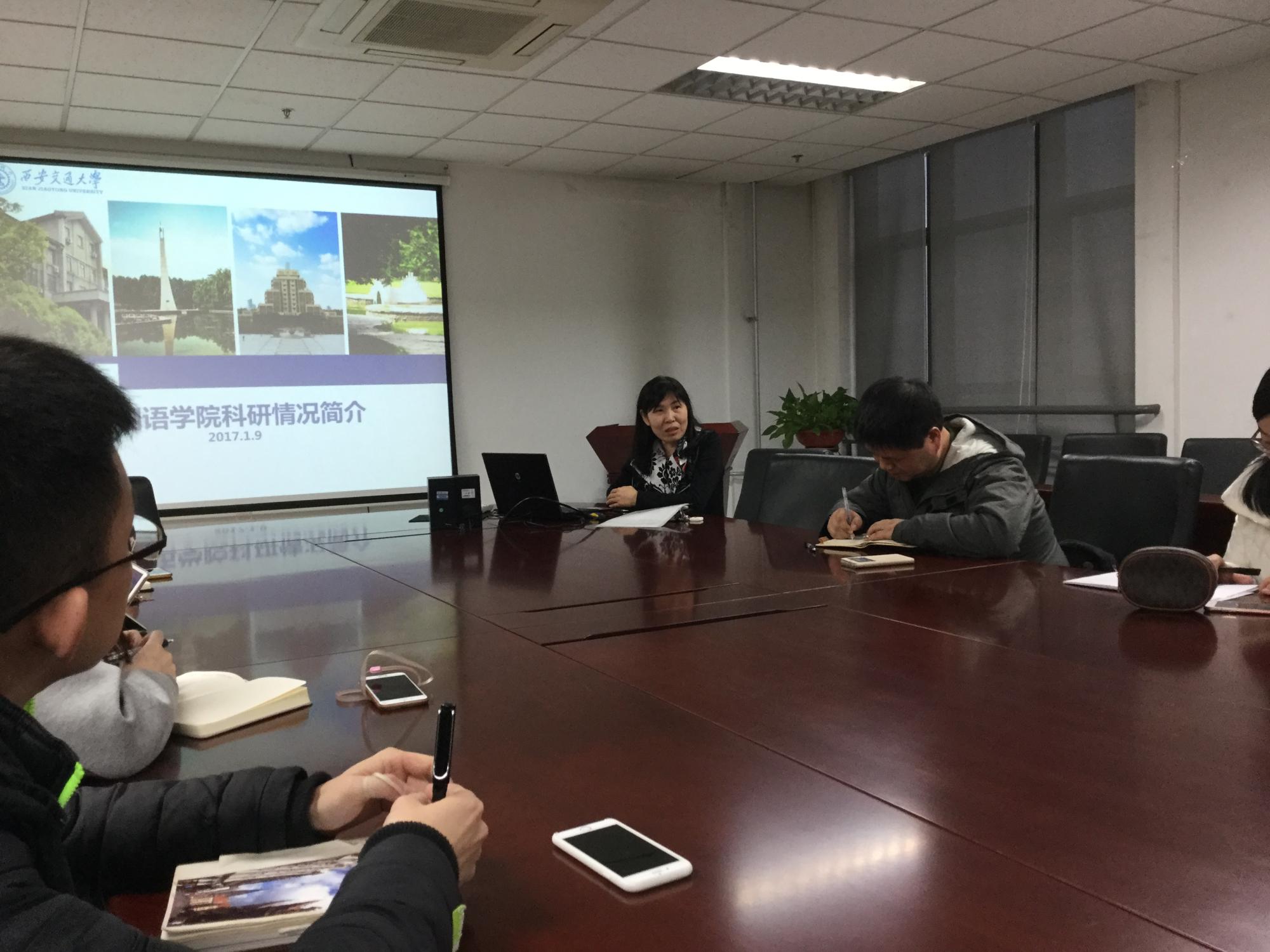 2017年1月5日下午外语学院青联会邀请学院主管科研的副院长、博士生导师王敏教授与青年教师座谈,畅谈学院的学科建设与年轻人未来的科研发展。