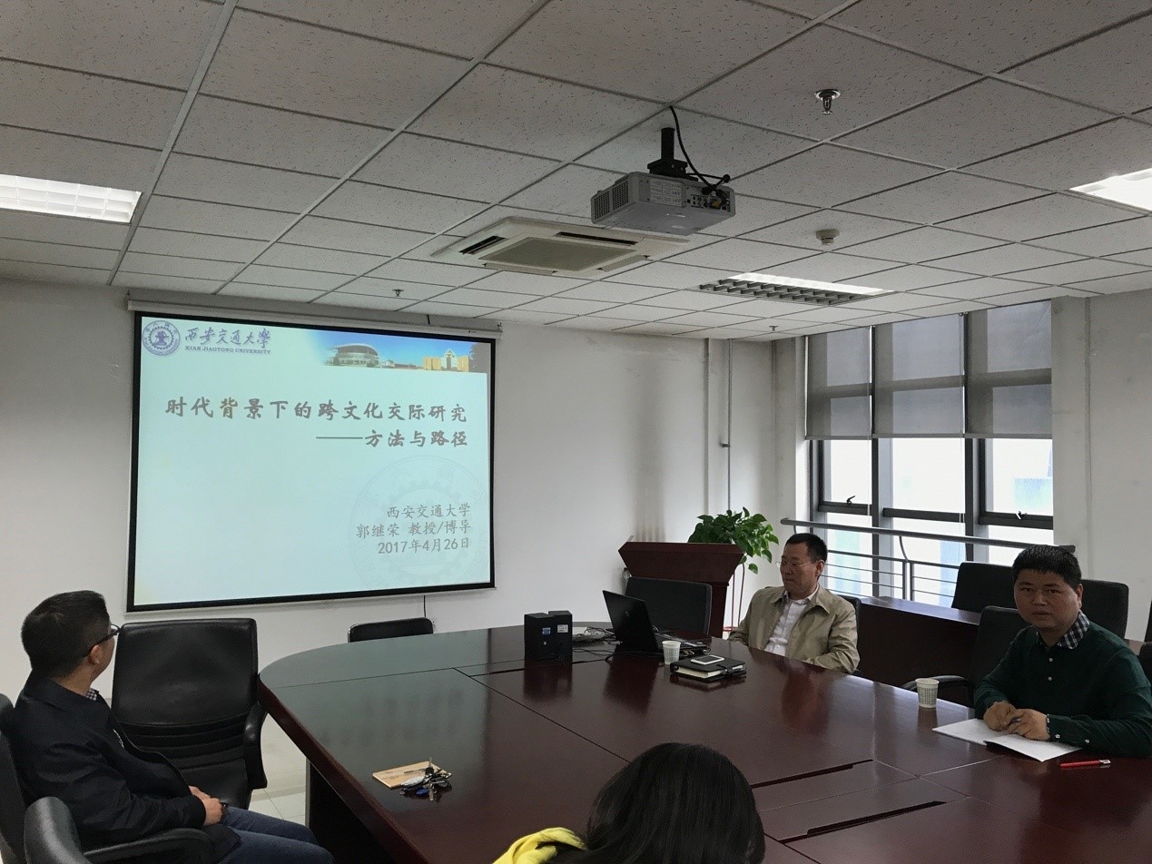博士生导师郭继荣教授为青年教师做了题为“时代背景下的跨文化交际研究方法与路径”的精彩讲座。
