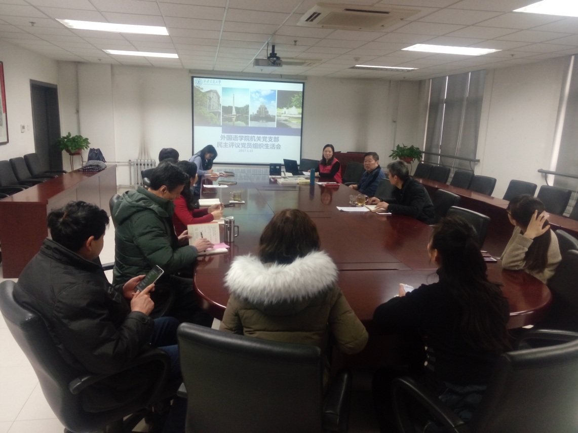 机关党支部在外文楼B912会议室召开专题组织生活会民主评议党员,开展理论学习,传达学校寒假工作会议精神,总结支部上一年度工作情况并安排寒假读书活动。