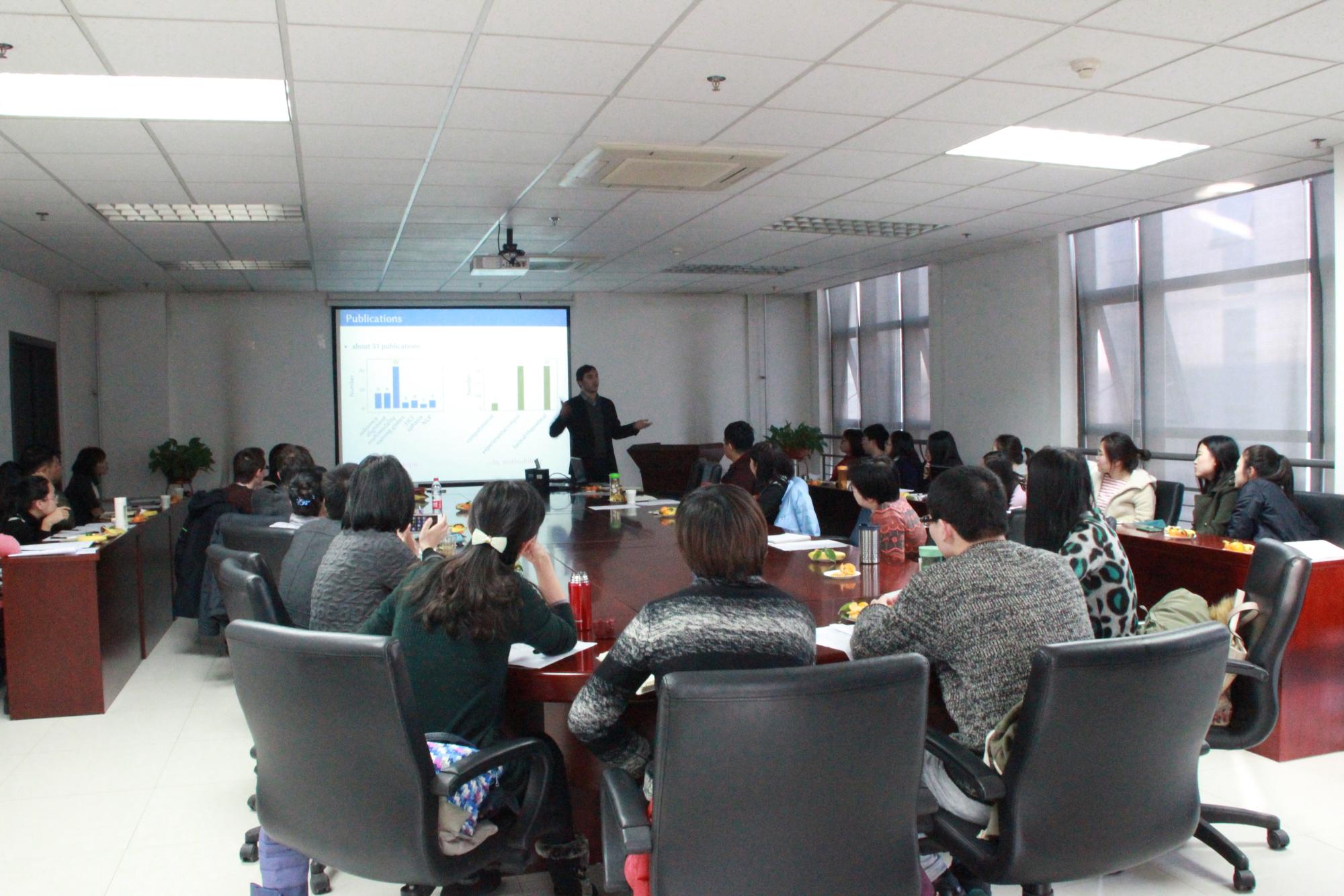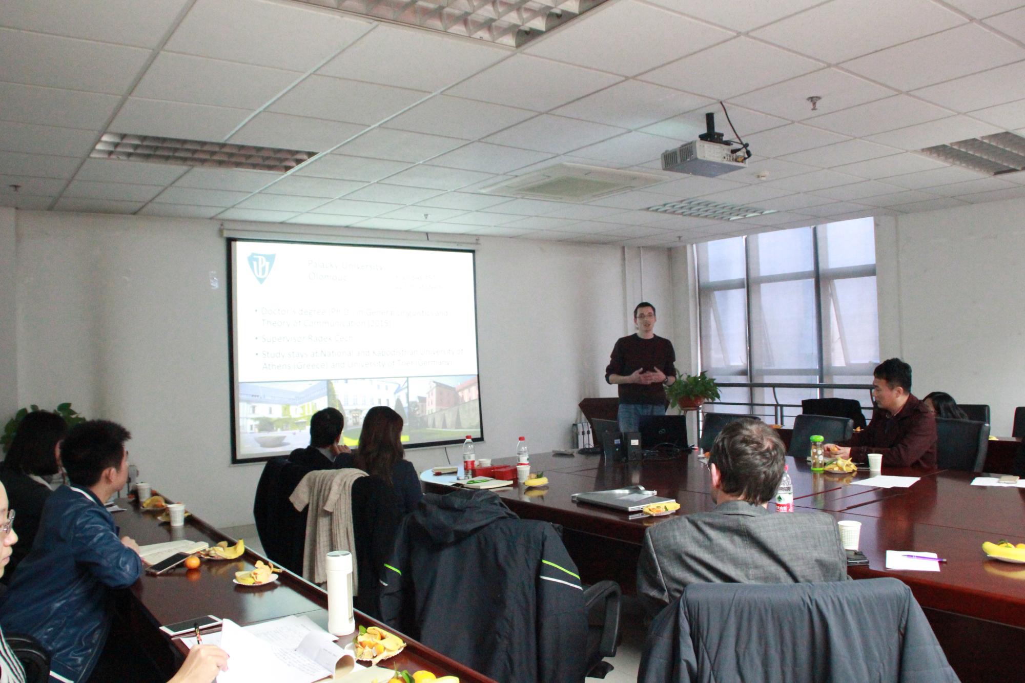 下午,Dr. Christiane Lucking、Dr. Andy Lucking和Dr.Miroslav Kubat就其主要科研方向和领域发展作精彩报告。Dr. Christiane Lucking从临床言语、语言治疗角度讲述对中风患者吞咽的治疗;Dr. Andy Lucking则介绍了语言学多模态语义及其在人工智能中的应用前景;Dr.Miroslav Kubat主要就其对语料库篇章分析的科研情况做了汇报展示。参会的教师、学生反响热烈,纷纷就其感兴趣问题与学者们进行交流探讨。