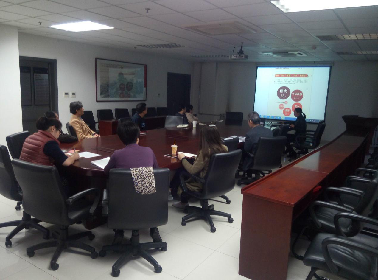 机关党支部在外文楼B912会议室组织学习十九大精神,会议由支部书记马薇主持。