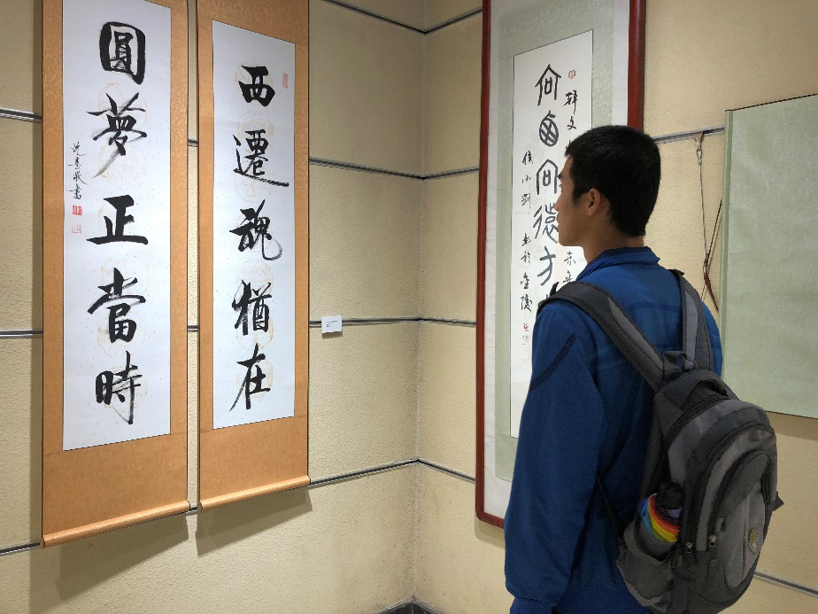 “西迁精神主题书法展”内,遒劲有力,入木三分的书法作品,不仅体现前辈对西迁伟大事业的感受,校友对西迁精神的理解,还有对西交未来的真挚祝福。田丽同学感慨万分,“老前辈们将感受落于笔尖,作为后辈的西交人应该追忆西迁故事,继承并发扬西迁精神!”