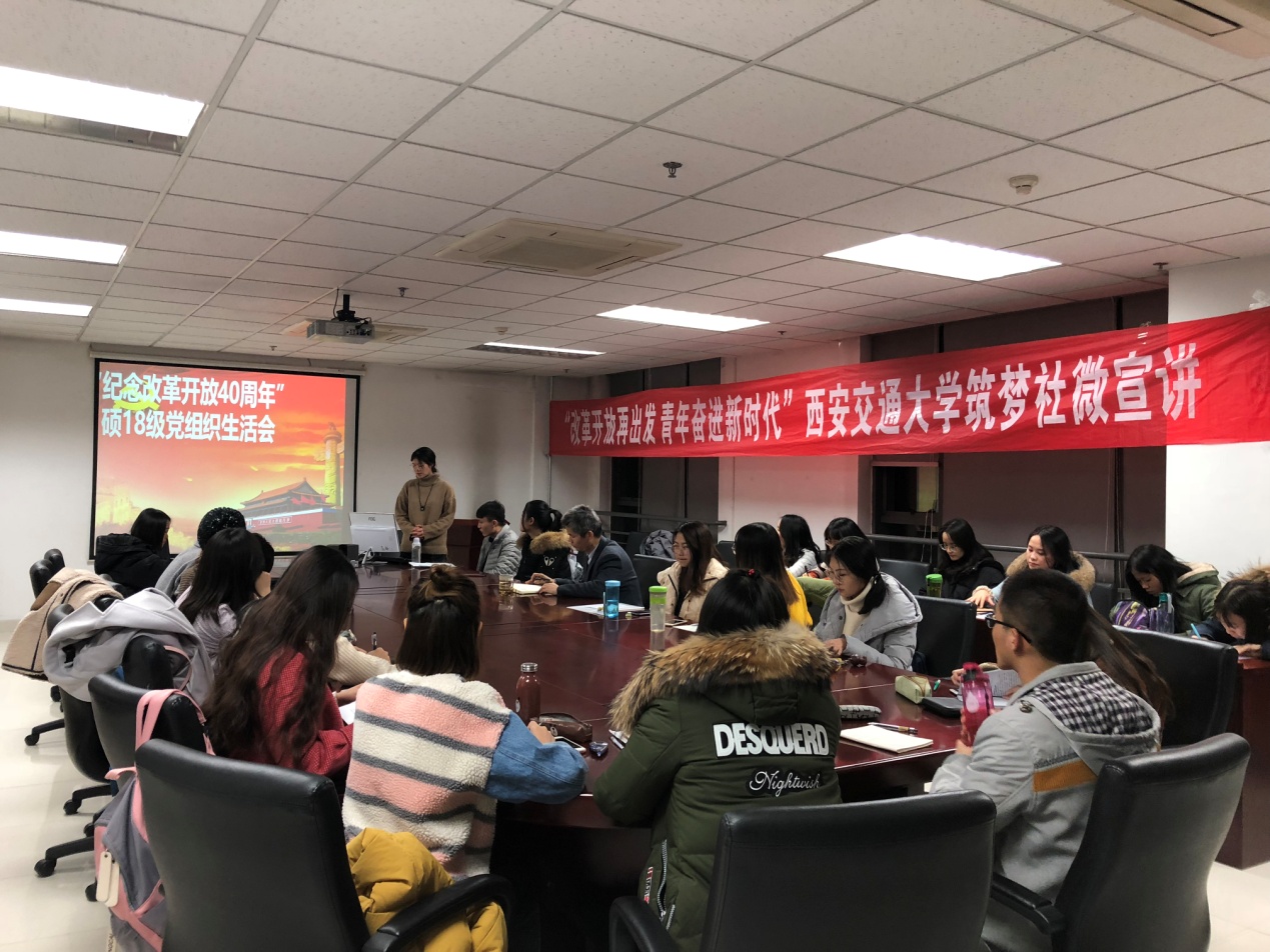 筑梦社作“改革开放再出发,青年奋进新时代”主题宣讲。学院党委书记杨小渭、辅导员俞程成莅临生活会。会议由支部书记刘银屏主持。