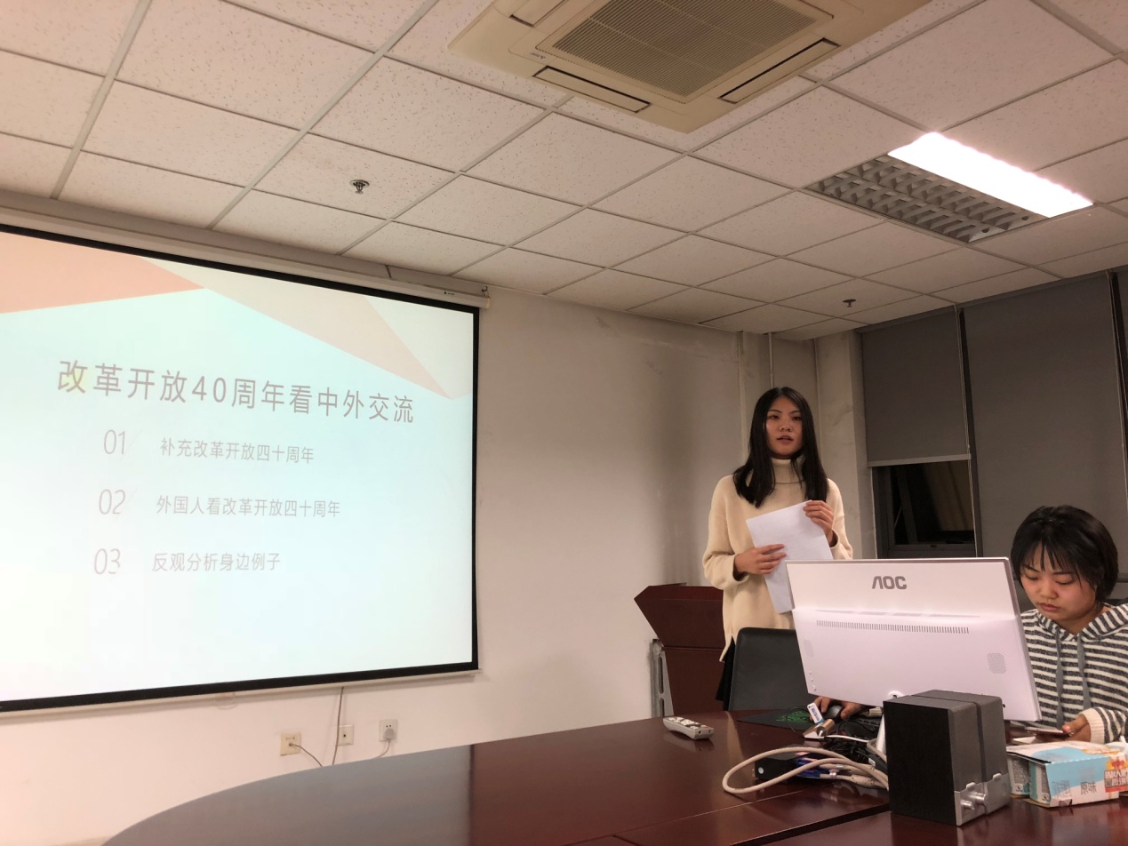 硕2018级党支部在外文楼B912召开“如何回首,看来时路——庆祝改革开放四十周年”主题生活会。本次会议由支部成员林倩、熊乐主持。