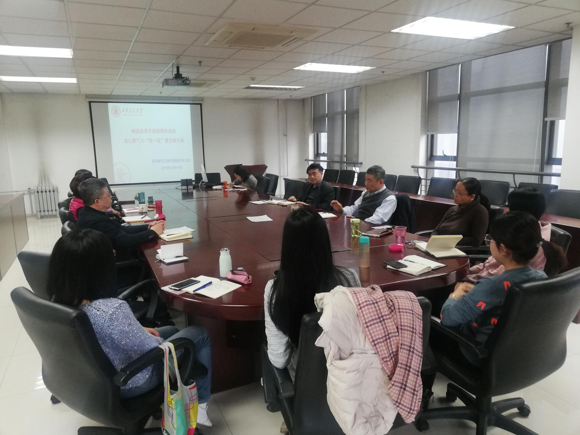 多语种教工党支部在外文楼B912会议室召开专题组织生活会。会议由污污漫