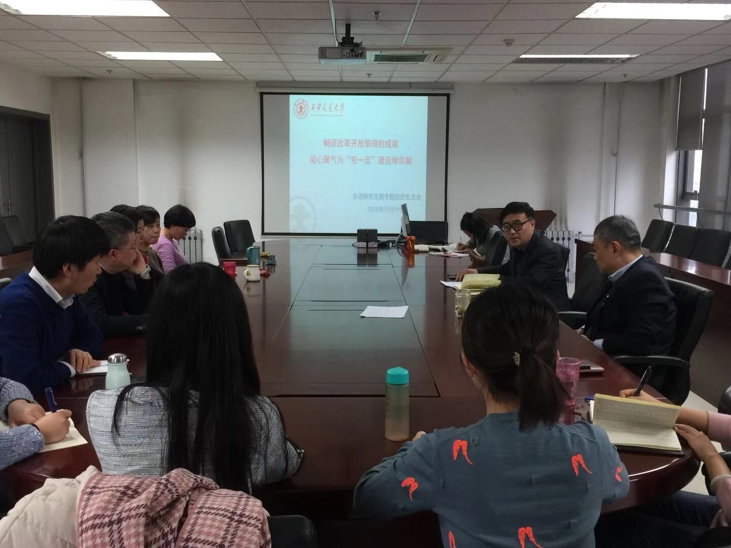 畅谈40年改革开放取得的成就,凝心聚气为“双一流”建设做出贡献,大家纷纷表示一定要在平时的工作中,严格要求自己,发挥党员的模范带头作用,反对学术不端行为,在教学科研及人才培养方面做出更大成绩。