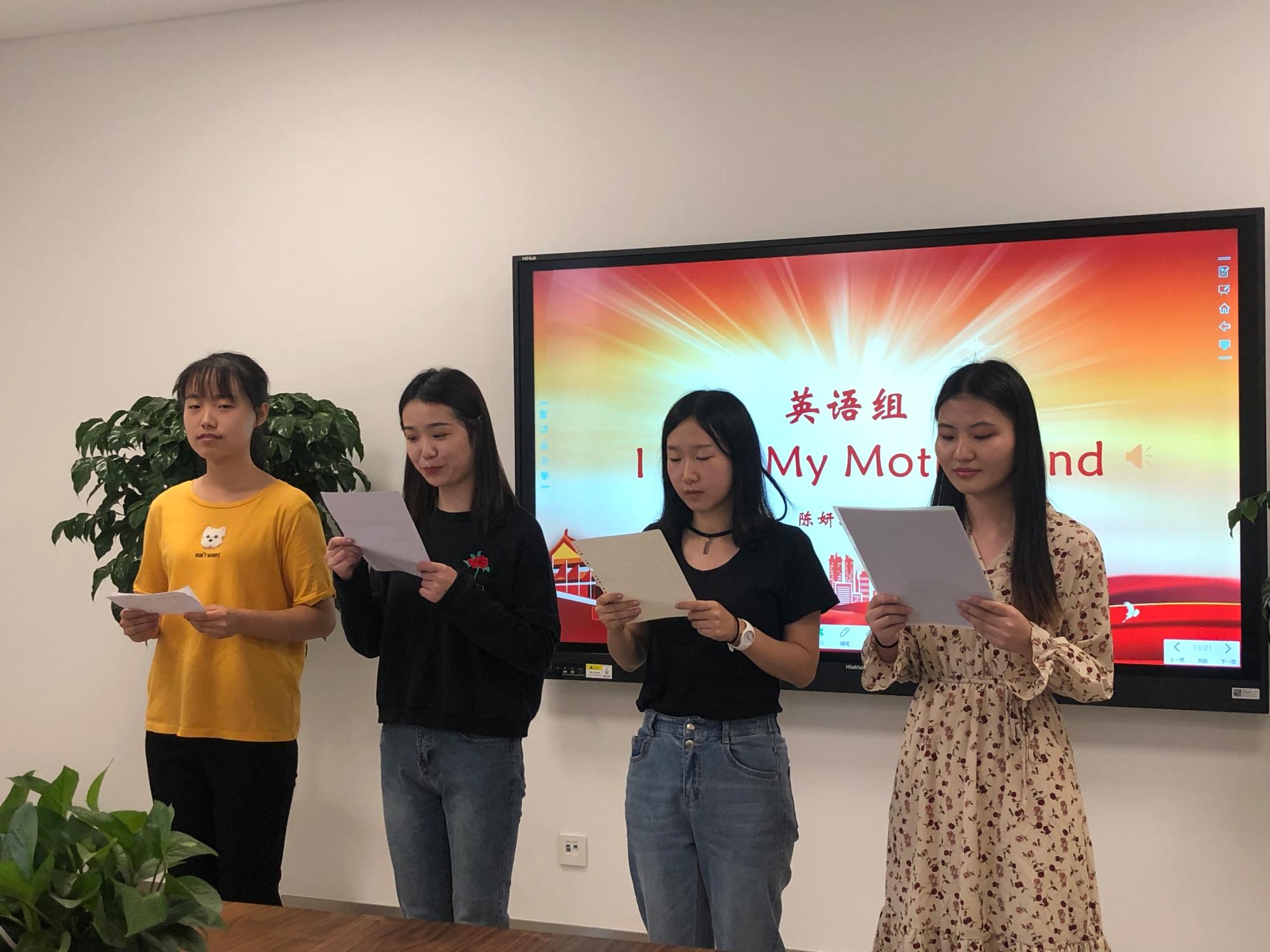 此次主题教育活动召开正值新中国成立70周年,各个党员发挥外语学科特色,用中、英、俄、法、日五种语言朗诵的方式,向祖国献礼,表达对我们伟大祖国的祝福与热爱。