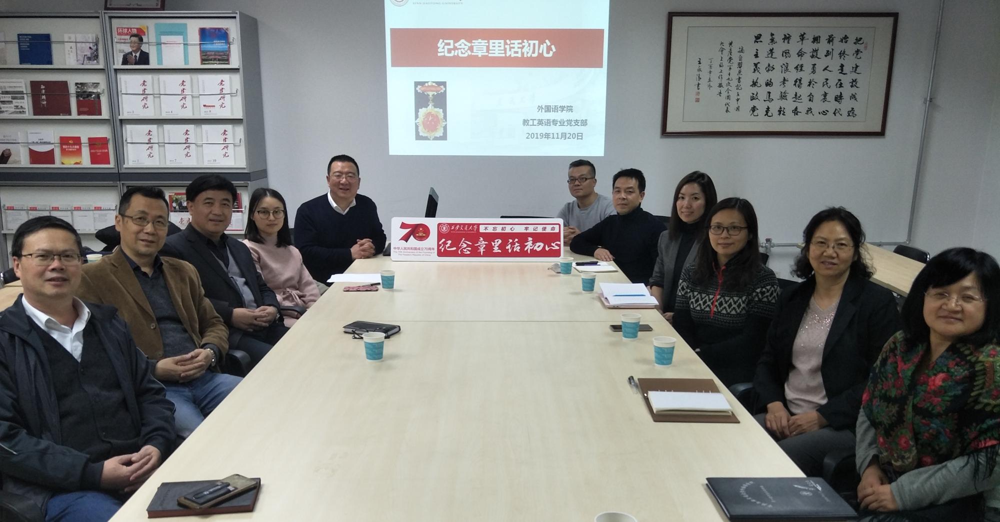 教工英语专业党支部邀请2015年国家技术发明二等奖获奖人、“庆祝中华人民共和国成立70周年纪念章”获得者,能动学院教授曾敏和支部成员在外文楼B711会议室座谈。座谈会上,曾敏教授分享了他作为交大人二十四年以来的学习、教学和科研历程中的宝贵经验。参加座谈的教师感觉启迪良多、收获颇丰。