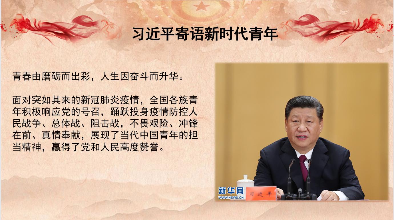 在学习了习总书记对新时代青年的寄语之后,王文蕊同志与侯梦斐同志积极向大家分享了自己的感想。王文蕊说到:正如习总书记在五四青年节寄语中所说的,青春由磨砺而出彩,人生因奋斗而升华。在我国疫情十分严峻之时,无数与我们年龄相当的医护人员不畏艰难困苦,冲锋在前,积极投身战疫的前线。我们作为外语专业的学生,在面对这种灾难时虽然无法向医护人员一样支援前线,但医护青年在抗疫中所展现的精神和担当,让我们震撼,也很值得我们学习。