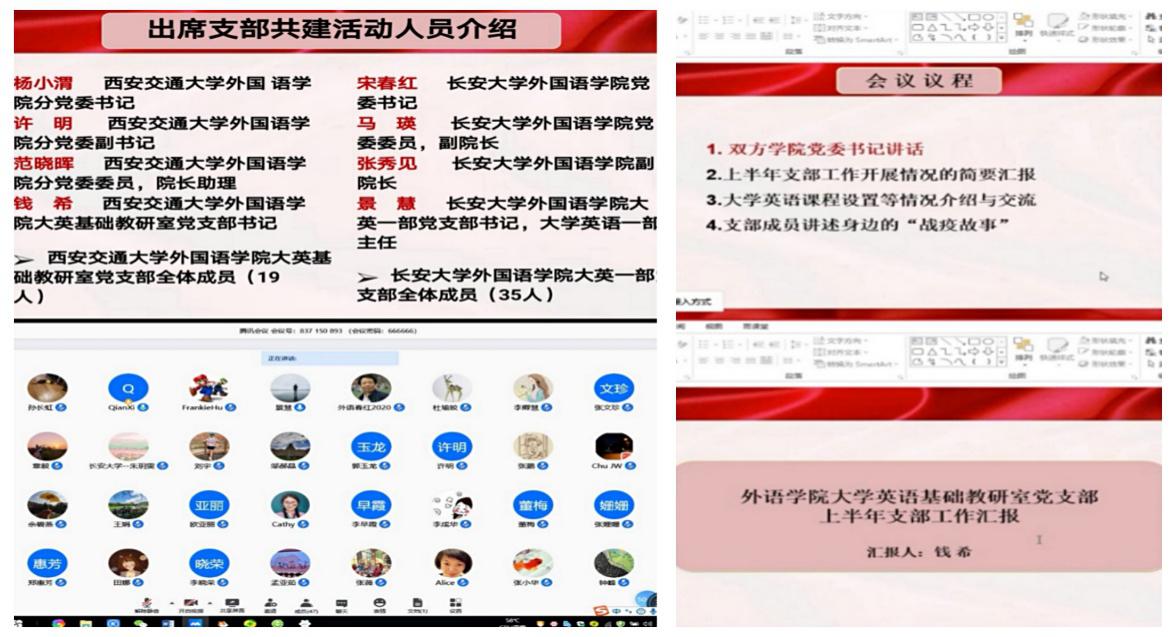 大英一部党支部通过腾讯会议开展支部共建活动,以共促基层党建,实现党员相互交流学习的目的。双方学院的党委书记、副书记、副院长、党委委员及两个支部党员教师共计50余人出席本次支部共建活动。