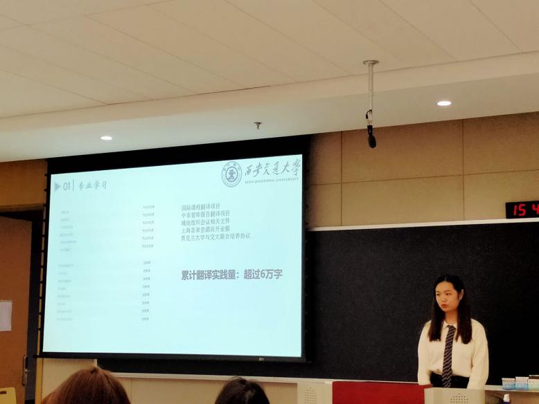 硕19级党支部党员同学向本科支部的同学们分享了个人在科研学习方面的成功经验。硕19级党支部MTI专业的优秀学生代表姚瑶、陈妍向大家分享了自己在提高专业技能、参加竞赛等多方面的心得体会,为有志于学习翻译的同学提供借鉴参考。硕19级党支部学硕专业的优秀学生代表杨轩则分享了参加学术会议并宣读论文、作为第一作者出版书籍、竞赛获奖等多项经历。