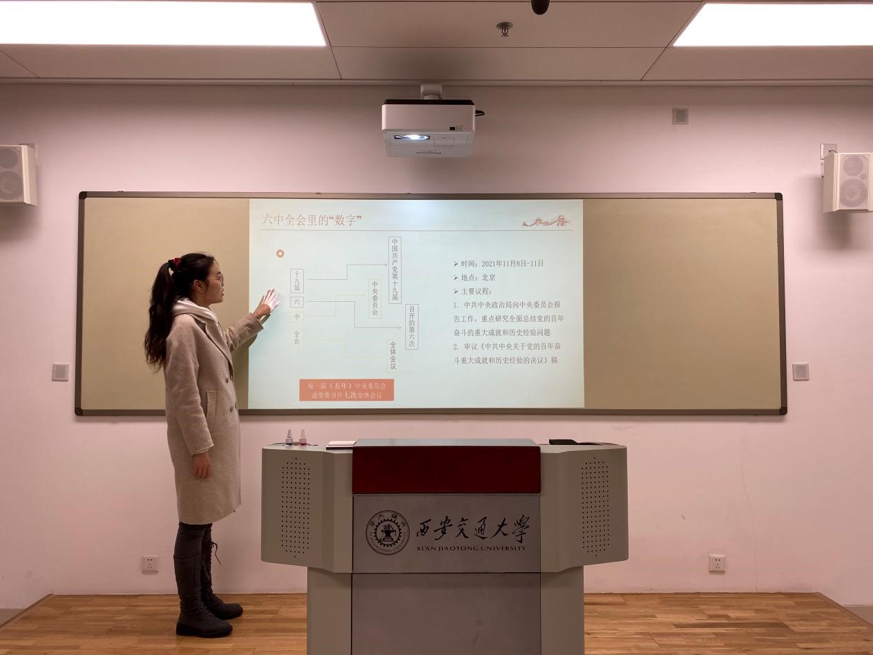 最后,吴鸽同学指出,学习十九届六中全会精神不能只靠一次会议,党员同学要有自主学习意识,利用课余时间加强学习,提高自己的思想觉悟。