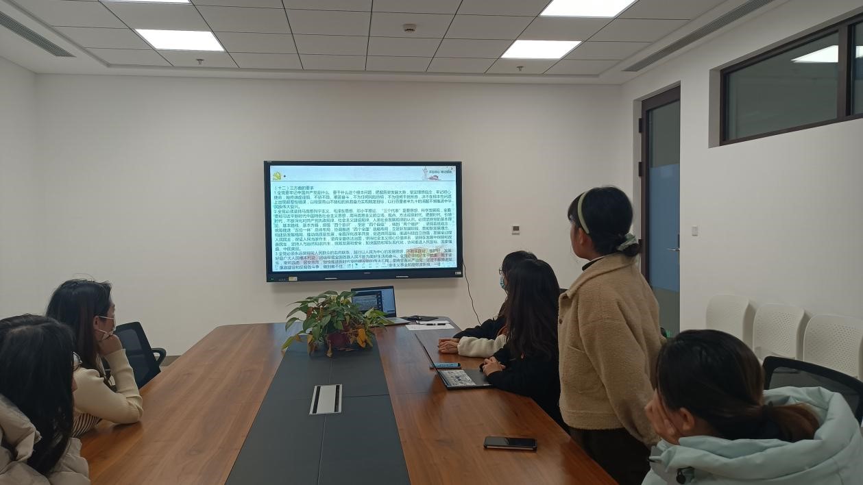 首先,马瑞带领支部成员一起学习公报内容,通过诵读的方式,大家对全会的基本内容、流程和意义等内容有了更深刻的理解。这次全会既是对过去百年党的成就与经验的总结,更是下一个百年的开篇。马瑞特别强调了马克思主义中国化的三次飞跃、中国共产党百年奋斗的意义和宝贵经验,号召支部成员们要认真领悟公报的每一句话,要勤学常悟,树立实现中华民族伟大复兴的信心和决心。