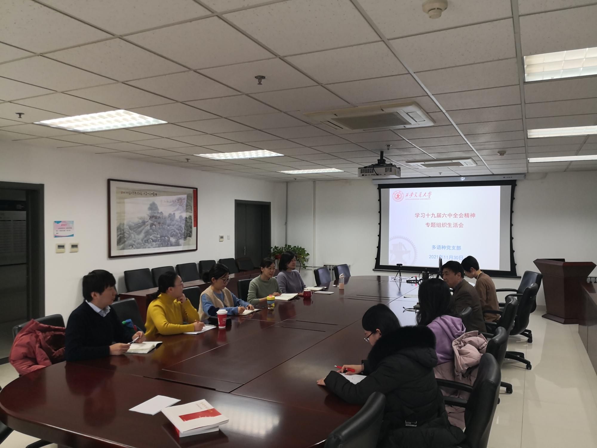 多语种教工党支部在外文楼912会议室召开学习十九届六中全会精神专题组织生活会。污污漫