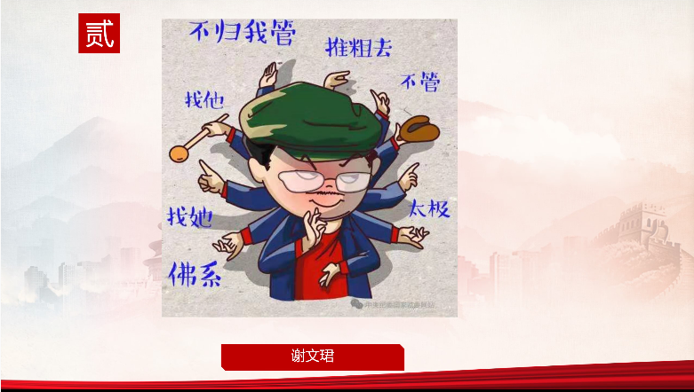 其次,王丹、谢文珺和贺子昱通过三幅关于廉政主题的漫画,用幽默诙谐和通俗易懂的语言向支部成员直观展示了党风廉政的不同类型,提醒大家要不忘初心,严格遵守党的纪律,不负自己,不负人民。杜红艳和史家琪分别结合自身的扶贫经历和2018年感动中国人物“焦裕禄式”的好干部——廖俊波的事迹,分享感悟。