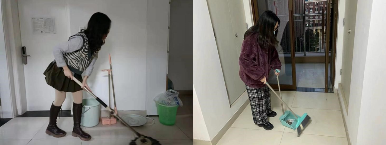 3月4日下午,同学们在涵英楼5楼集合,大家分工协作,手拎拖把、扫帚和垃圾袋认真清理了工位每张桌子上的灰尘和垃圾,清洗并为绿萝浇水。同时,留在寝室的同学也将公共区域打扫得干干净净。在大家的共同努力下,工位和寝室的窗台、过道等区域内的物品摆放整齐,整体环境旧尘除去,焕然一新。