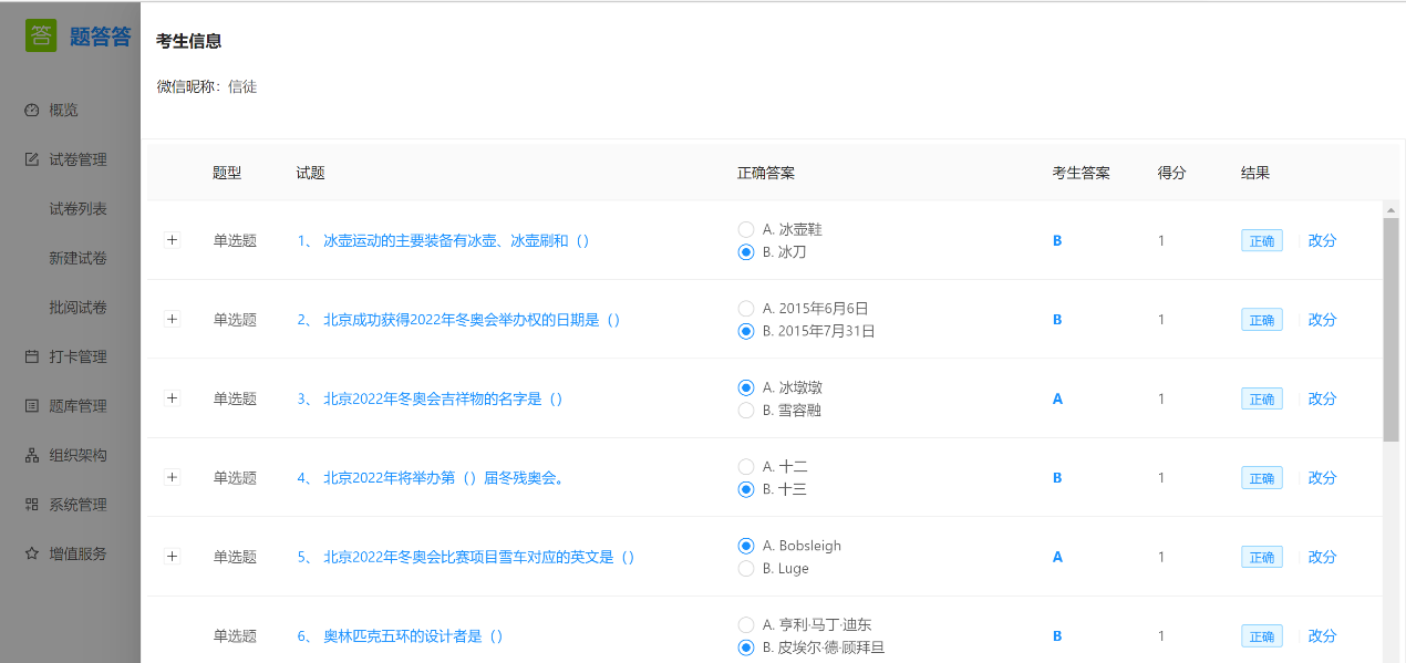 的特点加入了外语类题目;题型多样,选择、填空、判断题应有尽有。同学们在答题的过程中,也对冬奥会知识有了更深入的了解。最终何静雯、周汨江、张懿哲总分排名前三,获得小礼品冬奥手册一份。