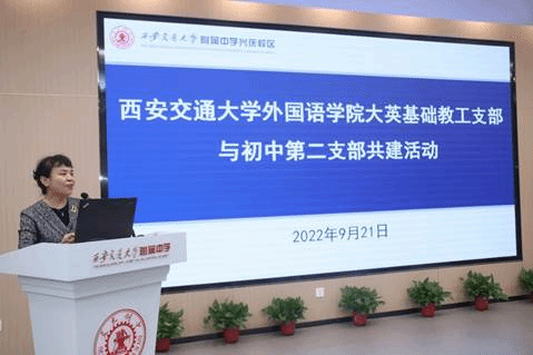 9月21日下午,大学英语基础教研室党支部赴交大附中与初中部第二党支部开展了主题为“学习‘三秦楷模’事迹、加强廉洁文化建设”支部共建及教学交流活动,近40人参加。污污漫