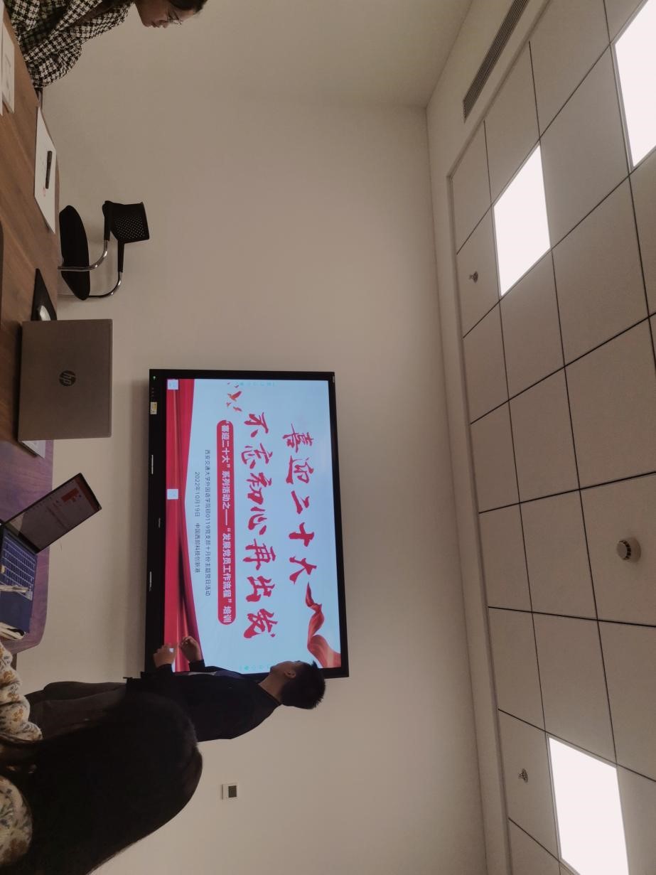 2022年10月19日,硕0119党支部开展以“喜迎中国共产党第二十次全国代表大会,不忘初心再出发”——发展党员工作流程培训为主题的党日活动。本次会议由党支部书记刘银萍主持,支部全体党员、发展对象、积极分子参会。