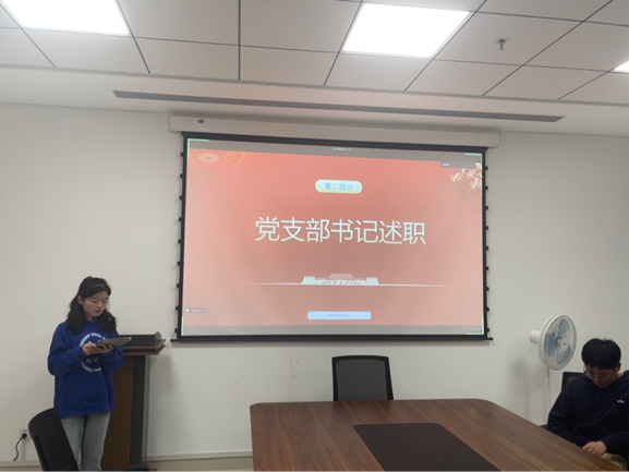 随后,支部书记喻静代表支部向大会进行2022年度工作述职报告,喻静首先总结了年度支部内工作开展情况,肯定了支部工作建设取得的成果,党员们党性修养、学习生活、志愿服务等方面都有了提升和进步。然后,针对目前存在不足的地方,提出了改进措施。