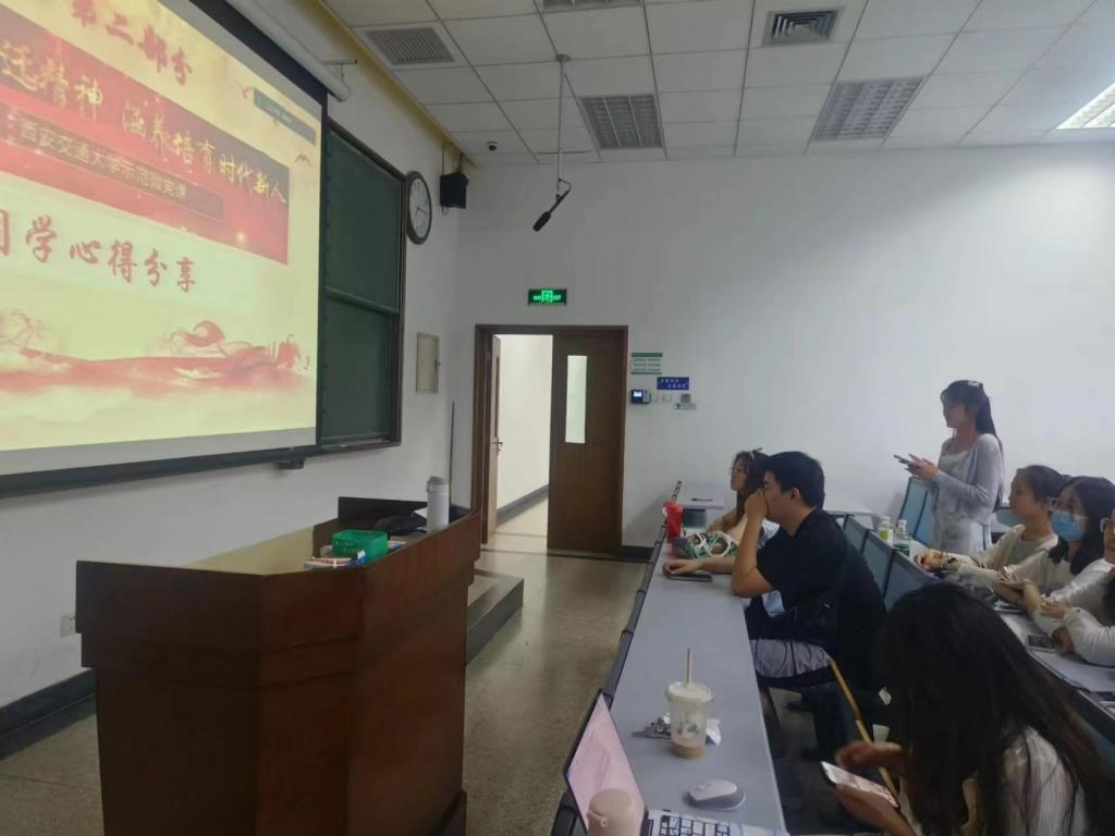 高诗喆同志说:西迁是一段无论何时提起都令人钦佩、充满激情、包含勇气与力量的历史岁月。作为一名交大人,我们一定要不辜负习近平总书记的期望,不忘初心,牢记使命,胸怀大局、无私奉献、弘扬传统、艰苦创业,把西迁精神发扬光大,把共产党人的精神与信念刻在心上,永远让精神的旗帜高高飘扬。翟淑雯同志说:交大人是我们共同的名字,成为交大人,也就是选择了担当起时代的责任和担当,将西迁精神传递下去,将交大人这个名字背后的力量传递下去。于杰同志说到:青年要继承交大前辈的优良品质和扎实作风,树立远大理想,脚踏实地苦钻研。争做有理想、敢担当、能吃苦、肯奉献的新时代先锋青年!