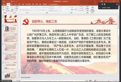 学习了报告的重点内容后,支部进一步从具体的英雄人物事迹入手,帮助支部成员理解青年一代的责任与担当。支部成员共同学习了陈延年在组织省港大罢工时对工人的关怀与支持,也对其面对刽子手时挺身而起、昂首凛然的英雄气概而深感敬佩。支部成员表示,学习革命烈士陈延年的英雄事迹对我们的人生价值选择起到了导向作用,帮助我们不忘初心,砥砺前行,把个人的成长融入到国家的发展中,为国家富强、民族复兴添砖加瓦。