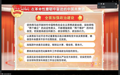 硕2116团支部线上开展了以“学习中国共产主义青年团第十九次全国代表大会精神”为主题的团组织生活。本次组织生活由硕2116团支部书记孔悦杭主持,学习内容分为以下两个部分:中国共产主义青年团第十九次全国代表大会报告的重点内容、革命烈士陈延年的英雄事迹。
