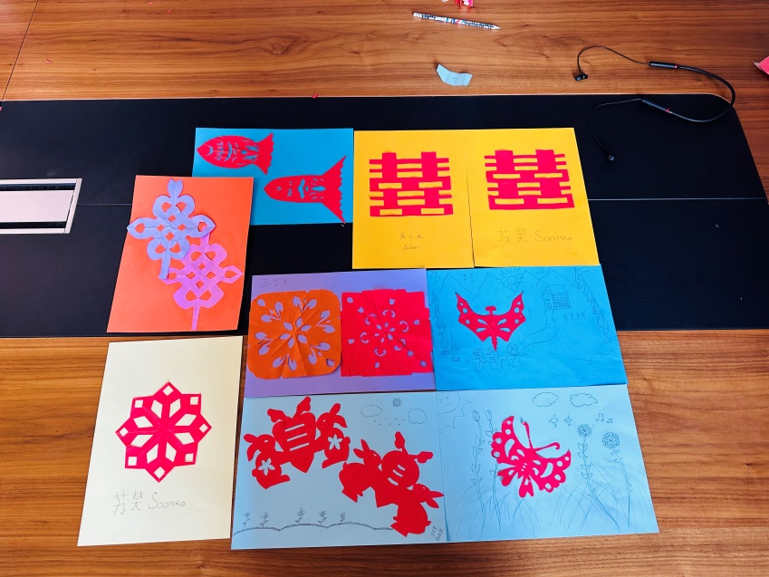 最后,所有参与者在这次活动中都创作了独特的剪纸作品和中国结,展示了他们的创造力和文化交流的成果。这次活动不仅丰富了大家的文化生活,也加强了大家对多元文化的理解。