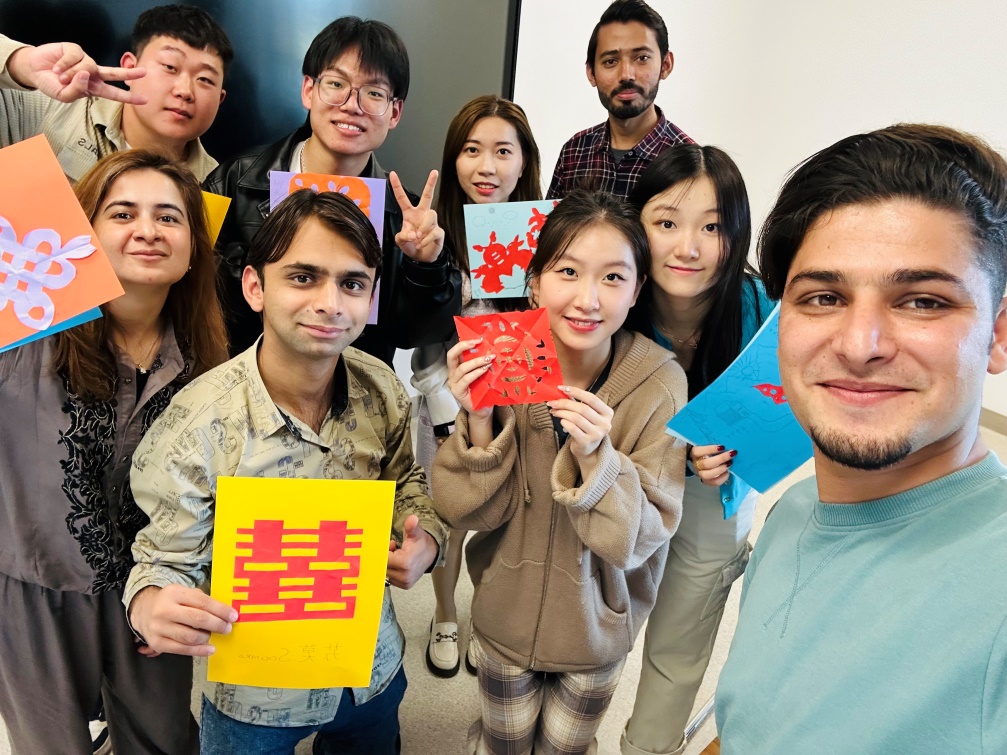 与国际学院巴基斯坦留学生于10月14日共同举办了一场别开生面的非遗文化交流活动。这一次,以手工剪纸和中国结为主题,汇聚了硕S3122班团支部、硕S3123班团支部以及国际教育学院的巴基斯坦留学生,让我们一起走进中国非物质文化遗产的璀璨世界。