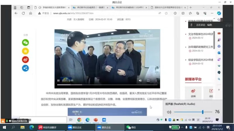 接下来,支部书记喻静带领支部成员进行理论学习,筑牢思想根基,共同学习了2024年政府工作报告、2024年政府工作十大任务以及李强总理调研交大创新港的相关内容。2024年是中华人民共和国成立75周年,是实现“十四五”规划目标任务的关键一年。2024年政府工作报告中强调,今年我国发展面临的环境仍是战略机遇和风险挑战并存,有利条件强于不利因素。我们必须增强信心和底气。同时要坚持底线思维,做好应对各种风险挑战的充分准备。只要我们贯彻落实好党中央决策部署,紧紧抓住有利时机,用好有利条件,把各方面干事创业的积极性充分调动起来,一定能战胜困难挑战,推动经济持续向好,行稳致远。作为青年大学生,我们应不断提升自身的知识水平和实践能力,注重培养自己的创新意识和创业精神,为实现中华民族伟大复兴的中国梦贡献自己的力量。