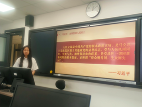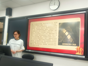 最后,连婧如同学进行了党史故事分享。她讲述了腰缠万贯的“讨米人”——刘启耀的故事。刘启耀即使面对生死考验,也始终没有花费公款分毫,其爱国主义精神感染着每一位听众。“为官不贪、清政廉洁、克已奉公、顾全大局”,是他一生品格的真实写照。