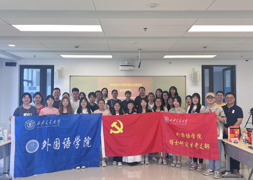 在创新港涵英楼5-6108教室成功举办《中国共产党纪律处分条例》知识竞赛。活动由博士生党团支部承办,博士生团支部书记祝尚珍主持,污污漫