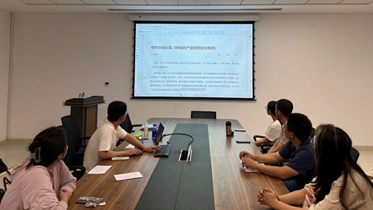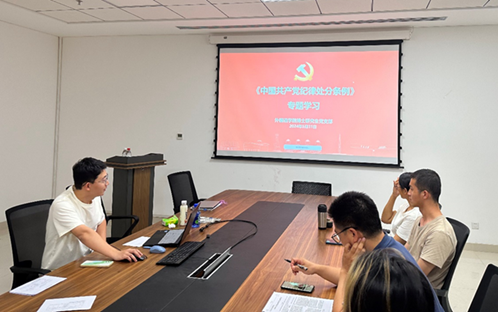 博士研究生党支部于创新港5-5077会议室开展《中国共产党纪律处分条例》(以下简称《条例》)专题学习。本次活动由支部书记姜家奇主持,支部全体成员参加。