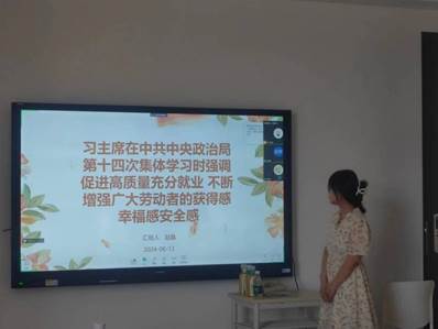 为发展新质生产力所提出的举措以及做出的努力。党员赵晶则介绍了我国的就业相关政策,强调了党和政府对就业工作的重视,以及国家在完善重点群体就业支持方面所做的努力。