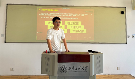 姜家奇说到,我们至少应从以下两个方面践行党纪学习教育:一是坚守诚信底线,拒绝学术不端,以严谨求实的态度追求真知。学术道德规范是我们学术生涯的基石,它要求我们在研究过程中保持诚实、客观和公正,尊重他人的知识产权,不抄袭、不剽窃、不伪造。作为学生党员,我们更应以身作则,成为学术诚信的守护者,用我们的实际行动为营造风清气正的学术环境贡献力量。二是学生生活作风,作为新时代的学生党员,我们应当树立积极向上的生活态度,注重个人品德修养,遵守社会公德和校规校纪,远离不良嗜好和消极影响,以良好的生活作风展现学生党员的风采。