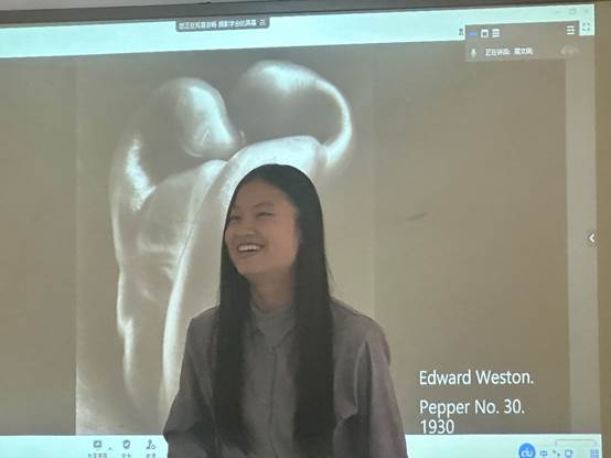 学生摄影学会会员王越同学为我们带来了第三场主题讲座:“看几张好照片,讲一点小故事”。王越同学以著名摄影师Edward Weston、Garry Winogrand、Stephen Shore和Henri Cartier-Bresson的摄影作品为例,讲解了黑白摄影的魅力和名家镜头下照片的故事性。她请大家分别谈一谈在看到每张照片时自己内心的感受,并介绍了每张摄影作品的特别之处,包括明暗、颜色、布局、平衡等方面,带领同学们共同探索作品的深刻内涵。王越同学引用著名黑白风格摄影师柴田敏雄的名言表示,黑白摄影并非只是没有色彩的画面,而是创造出了一种介于现实与非现实之间的空间,让观者保持距离,从而重新认识和思考被拍摄物。她希望通过讲解,不仅能让同学们对黑白摄影产生兴趣,还能使同学们思考照片的表达意义。
