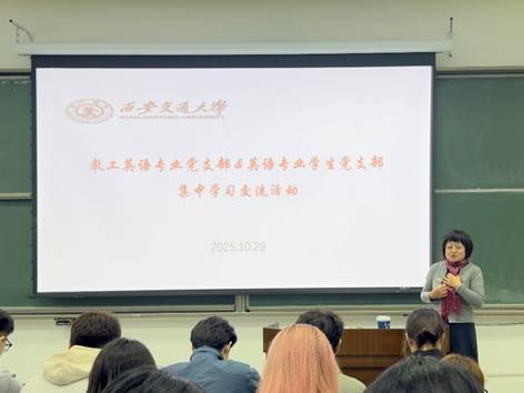 在集中学习环节,教工英语专业党支部书记杜丽霞首先带领大家深入学习了《习近平给天津大学全体师生的回信》和《习近平给全国特岗教师代表的回信》这两份重要文献。领学同志不仅传达了回信的丰富内涵和核心要义,还结合自身从教经历和育人实践,分享了学习体会。与会党员深刻认识到,这两封回信字里行间饱含着习近平总书记对教育事业的高度重视、对广大教师队伍的殷切关怀、对青年一代成长成才的深情嘱托。