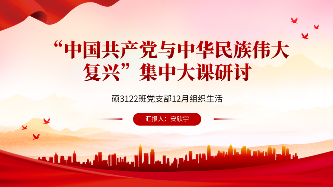 硕3122班党支部开展主题为“‘中国共产党与中华民族伟大复兴’集中大课研讨”的12月组织生活,党支部全体成员参加,党支部书记安欣宇主持会议。